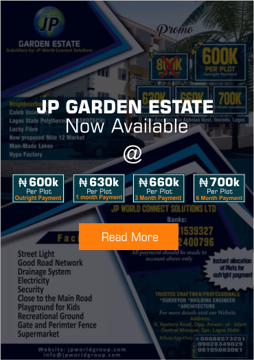 [/info_banner_vc][/vc_column_inner][/vc_row_inner][/vc_column][vc_column][vc_empty_space height=”40px”][vc_row_inner][vc_column_inner width=”1/4″][vc_single_image image=”2039″ onclick=”link_image” css_animation=”slideInUp”][/vc_column_inner][vc_column_inner width=”3/4″][cmt-sboxcta h2=”REAL ESTATE PROMO AT A GIVE AWAY PRICE 350K” h2_font_container=”font_size:21|color:%23000000″ h2_css_animation=”fadeIn” shape=”square” style=”3d” btn_title=”VIEW PROMO OFFERS” btn_shape=”square” btn_font_weight=”yes” btn_align=”right” btn_css_animation=”fadeIn” css_animation=”slideInUp” use_custom_fonts_h2=”true” btn_link=”url:http%3A%2F%2Fjpworldgroup.com%2Fjp-garden-offer%2F|title:View%20Promo|target:_blank”]Land give-away price of 350k only per plot for the Next 10(Ten) persons, Limited Lands[/cmt-sboxcta][/vc_column_inner][/vc_row_inner][/vc_column][/vc_row][vc_row][vc_column][vc_empty_space height=”6px”][/vc_column][/vc_row][vc_row cmt_bgcolor=”darkgrey” cmt_bgimagefixed=”” full_width=”stretch_row” tm_bgimagefixed=”” css=”.vc_custom_1760817777668{border-top-width: 70px !important;padding-bottom: 200px !important;background-image: url(https://jppinnacle.com/wp-content/uploads/2020/02/post-one.jpg?id=1470) !important;background-position: center !important;background-repeat: no-repeat !important;background-size: cover !important;}” cmt_responsive_css=”62119558|colbreak_no|||||||||colbreak_no|||||40px||0px||colbreak_no||||||||||colbreak_no|||||||||”][vc_column cmt_textcolor=”white” tm_textcolor=”white”][cmt-sboxheading h2=”How Can We Help You?” h4=”CONTACT DETAILS” txt_align=”center”][/cmt-sboxheading][/vc_column][/vc_row][vc_row cmt_bgimagefixed=”” break_in_responsive=”991″ cmt_shadow=”yes” equal_height=”yes” css=”.vc_custom_1760817792753{margin-top: 0px !important;padding-bottom: 0px !important;}” cmt_responsive_css=”20587087|colbreak_no|||||||||colbreak_no|0px||||0px||||colbreak_no||||||||||colbreak_no|||||||||”][vc_column reduce_extra_padding=”991″ cmt_bgimage_position=”left_center” width=”2/3″ css=”.vc_custom_1584942898985{padding-top: 63px !important;padding-right: 150px !important;padding-bottom: 60px !important;padding-left: 50px !important;background-image: url(http://jpworldgroup.com/wp-content/uploads/2020/01/cmt-colbg03.png?id=575) !important;background-position: center !important;background-repeat: no-repeat !important;background-size: cover !important;}” el_class=”cmt-bgcolor-white” cmt_responsive_css=”97069110|colbreak_no|||||||||colbreak_no|||||40px||40px||colbreak_no||||||||||colbreak_no|||||||||”][cmt-sboxheading h2=”Get A Free Quote” h4=”FREE CONSULTATION” seperator=”none” css=”.vc_custom_1580098782413{margin-bottom: 20px !important;}”][/cmt-sboxheading][vc_row_inner css=”.vc_custom_1584506307653{margin-top: -56px !important;padding-top: 0px !important;}”][vc_column_inner][contact-form-7 id=”601″][/vc_column_inner][/vc_row_inner][/vc_column][vc_column width=”1/3″ css=”.vc_custom_1600227558213{padding-top: 90px !important;background-image: url(http://jpworldgroup.com/wp-content/uploads/2020/09/building-construction-sunset.jpg?id=1747) !important;background-position: center !important;background-repeat: no-repeat !important;background-size: cover !important;}” cmt_responsive_css=”85643220|colbreak_no|||||||||colbreak_no|||||40px||||colbreak_no||||||||||colbreak_no|||||||||”][vc_row_inner css=”.vc_custom_1760816520274{margin-left: -106px !important;padding-right: 229px !important;padding-left: 0px !important;}” cmt_responsive_css=”42161798|colbreak_no|||||||||colbreak_no||||-15px||0px|||colbreak_no||||||||||colbreak_no|||||||||”][vc_column_inner el_class=”cmt-bgcolor-skincolor” css=”.vc_custom_1584505793086{padding-top: 30px !important;padding-right: 20px !important;padding-bottom: 42px !important;padding-left: 20px !important;}”][cmt-sboxicon type=”themify” icon_themify=”themifyicon ti-location-pin” color=”white” size=”sm” align=”center” css_animation=”fadeIn” css=”.vc_custom_1600134059503{margin-bottom: 0px !important;}”][cmt-custom-heading text=”Visit Our Office” font_container=”tag:h4|font_size:19px|text_align:center|line_height:25px” css_animation=”fadeIn” css=”.vc_custom_1600134042219{margin-bottom: 8px !important;}”][cmt-custom-heading text=”No. 4 Ayetoro Road, Opp Anwar-ul-Islam Central Mosque” font_container=”tag:p|text_align:center” css=”.vc_custom_1600227510678{margin-bottom: 0px !important;}”][/vc_column_inner][/vc_row_inner][vc_row_inner css=”.vc_custom_1584505811676{padding-right: 115px !important;padding-bottom: 80px !important;padding-left: 0px !important;}” cmt_responsive_css=”21028524|colbreak_no|||||||||colbreak_no||||||0px|40px|0px|colbreak_no||||||||||colbreak_no|||||||||”][vc_column_inner el_class=”cmt-bgcolor-grey” css=”.vc_custom_1584505826116{padding-top: 30px !important;padding-right: 20px !important;padding-bottom: 42px !important;padding-left: 20px !important;}”][cmt-sboxicon type=”themify” icon_themify=”themifyicon ti-location-pin” color=”black” size=”sm” align=”center” css_animation=”fadeIn” css=”.vc_custom_1600134334233{margin-bottom: 0px !important;}”][cmt-custom-heading text=”City and State Location” font_container=”tag:h4|font_size:19px|text_align:center|line_height:25px” css_animation=”fadeIn” css=”.vc_custom_1600134324012{margin-bottom: 8px !important;}”][cmt-custom-heading text=”Epe, Lagos State.” font_container=”tag:p|text_align:center” css_animation=”fadeIn” css=”.vc_custom_1600490881853{margin-bottom: 0px !important;}”][/vc_column_inner][/vc_row_inner][/vc_column][/vc_row][vc_row][vc_column][vc_empty_space height=”45px”][/vc_column][/vc_row][vc_row cmt_bgimagefixed=”” full_width=”stretch_row